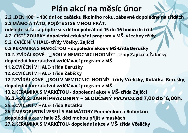 PLÁN AKCÍ NA MĚSÍC ÚNOR