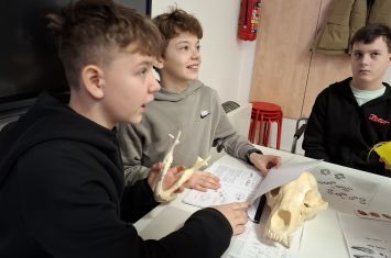 Ve vzdělávacím centru pak na žáky čekala praktická část programu. Mohli si zblízka prohlédnout lebky různých savců, porovnávat jejich velikost i tvar a zjišťovat, jak souvisí stavba těla se způsobem jejich života. Výuka tak byla názorná a umožnila dětem lépe propojit učivo přírodopisu s reálnými ukázkami.