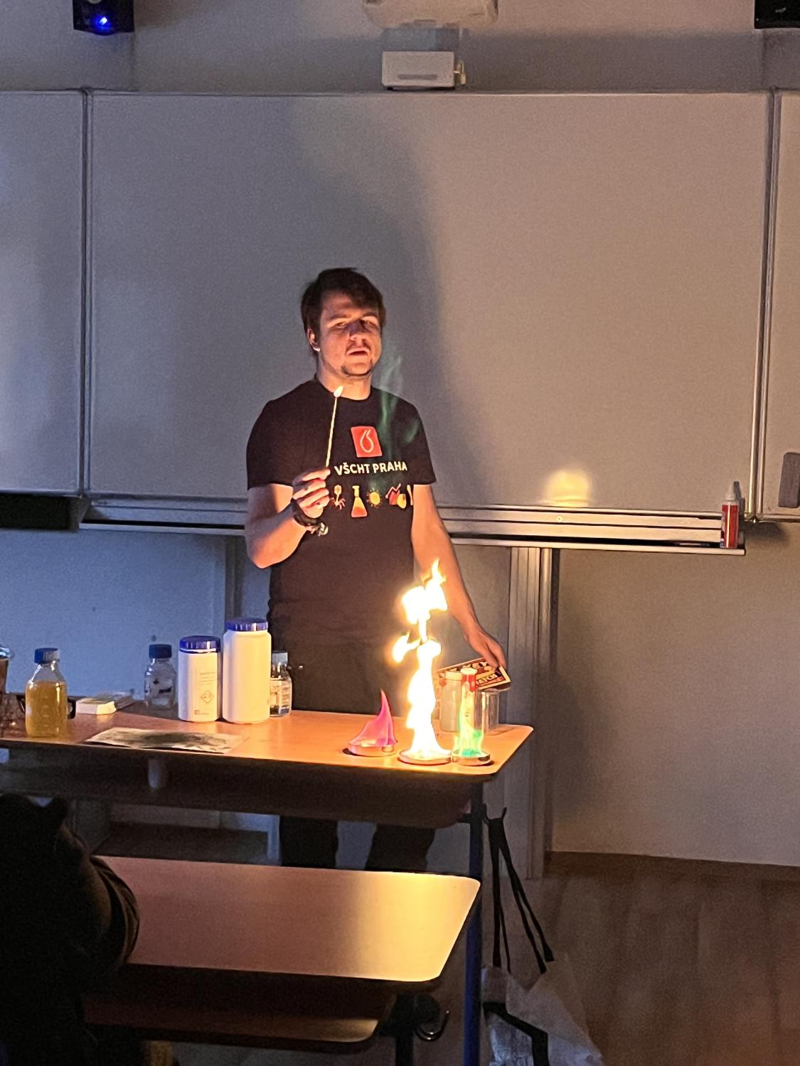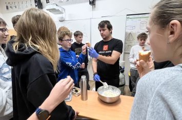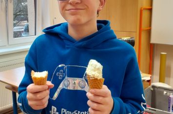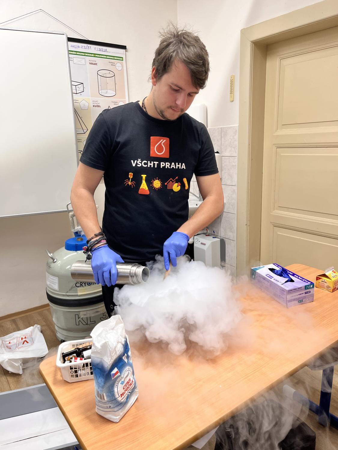 Středeční dopoledne 28. 1. 2026 bylo na naší škole věnováno chemickým experimentům. Navštívil nás totiž student pražské VŠCHT s projektem „HODINA MODERNÍ CHEMIE“. Tento projekt popularizuje chemii a její moderní metody, poukazuje na její nejnovější trendy a praktické aplikace. V 8. ročnících byl dětem interaktivní formou představen „ÚVOD DO CHEMIE“. Seznámily se zde např. s pojmy „CHEMICKÝ SEMAFOR“, „SUCHÝ LED“, byly jim představeny vlastnosti kapalného dusíku. Závěr celého programu pak byl zpestřen ochutnávkou zmrzliny připravené pomocí kapalného dusíku.
