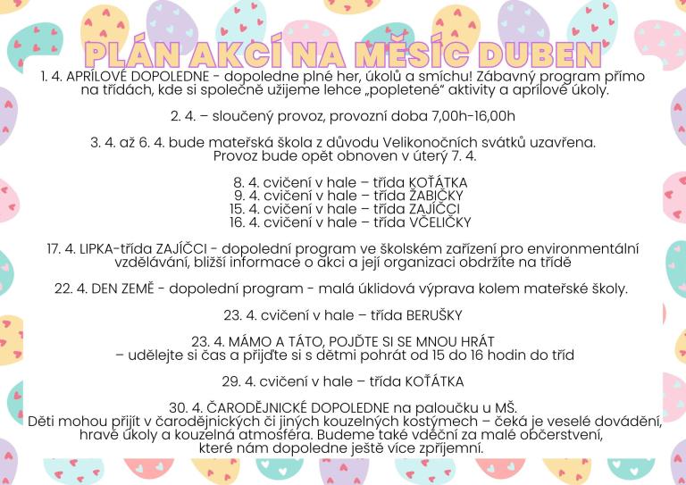 PLÁN AKCÍ NA MĚSÍC DUBEN
